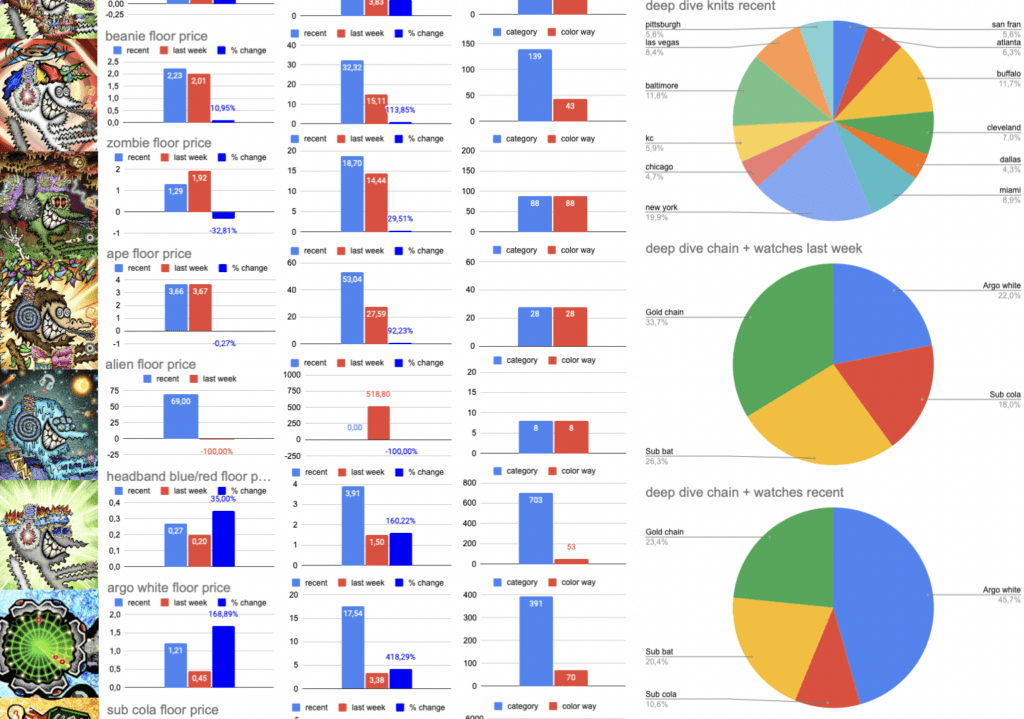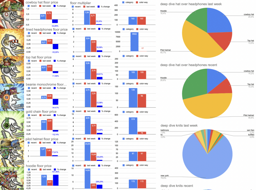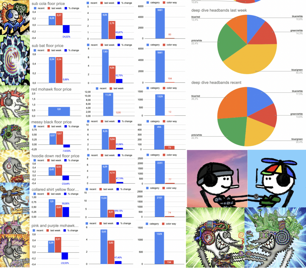 I made a little layout how a weekly creyzie rarity guide could look like and how people could display the rarities of trait categories like headbands and knits, that might be interesting to watch regarding the unique frames of the color ways.